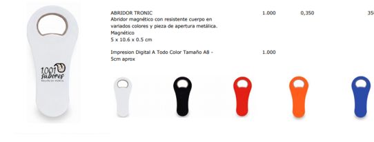 Descripción: Solicitamos presupuesto para la compra de abridores en blanco y en negro, serigrafiados a 1 color como los del documento adjunto.